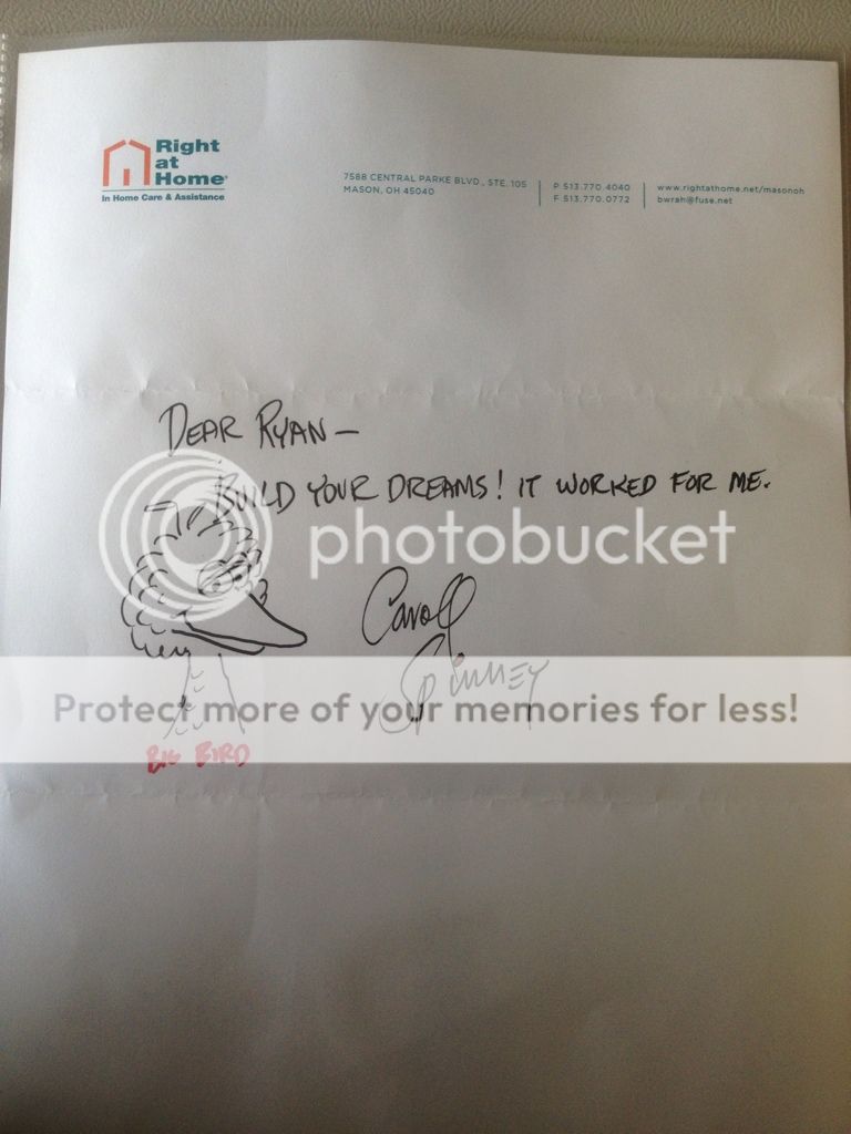 I had sent a letter to Carroll Spinney a long time ago expressing my frustrations and loss of confidence in puppetry. Lately I have been feeling discouraged about my puppet building. Yesterday, I introduced my puppets to a preschooler and was encouraged and refreshed after watching him interact with them. Then I had a nice surprise waiting on my desk today: Carroll Spinney replied to my letter. His message was short and sweet, but was extremely effective. Here is an image of his reply (on my business stationary!!)