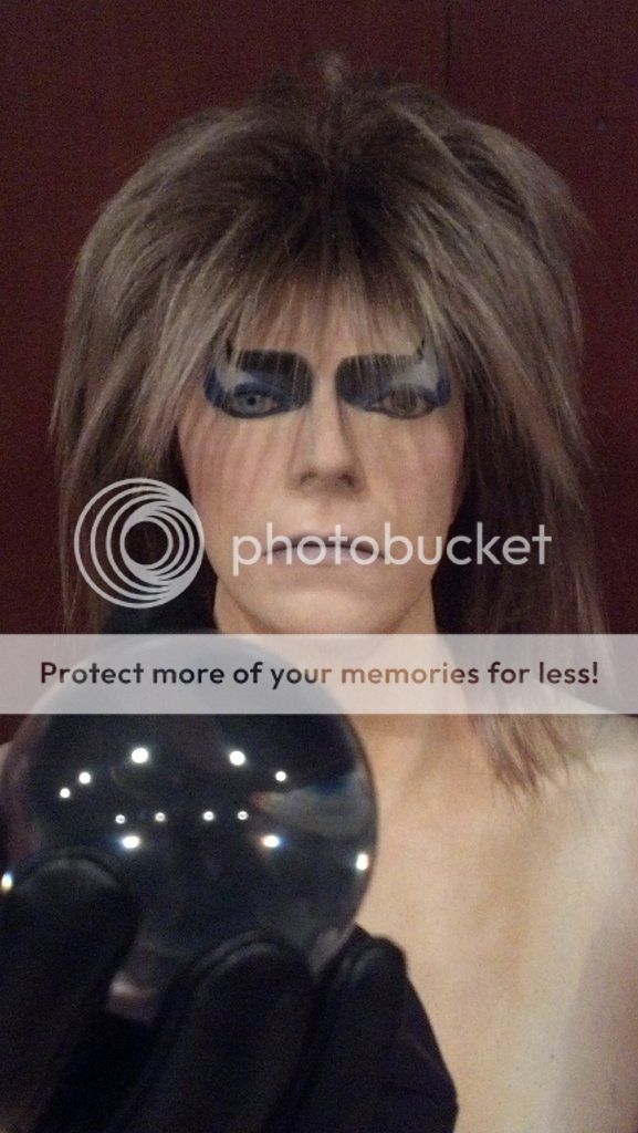Hi gang, I was recently commisioned to build a lifesize Jareth. I just shipped him out and he doesnt have his costume on but you can see whats done. It started off as a life cast which I sculpted in the eye area, the back of the head, the neck, and chest area. The client had custom glass eyes made to match Bowies. I also made poseable hands for him to hold his crystal contact juggling globes.