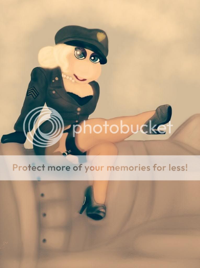 Wow! Your artwork always makes me smile. If Piggy can be a di8va on stage, she can be a milatary officier, er... well she can act like a military officier if she wants to. Thanks for sharing!