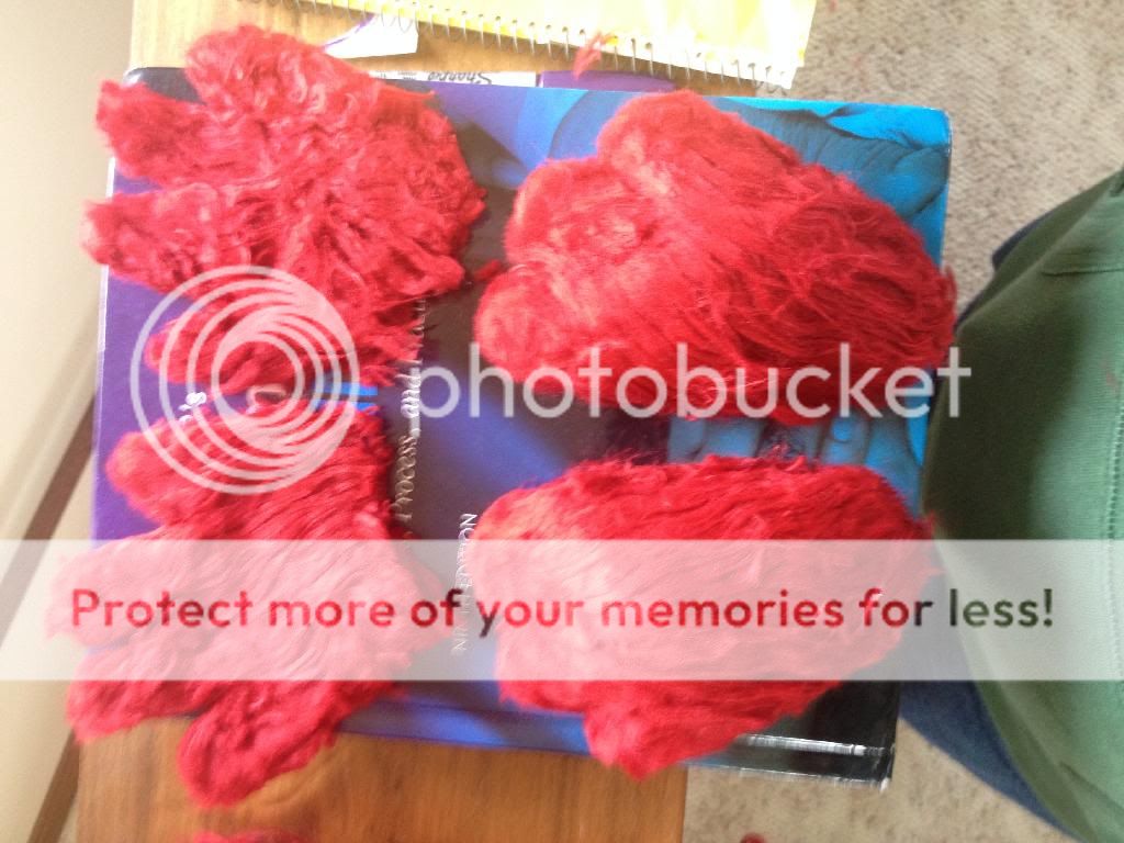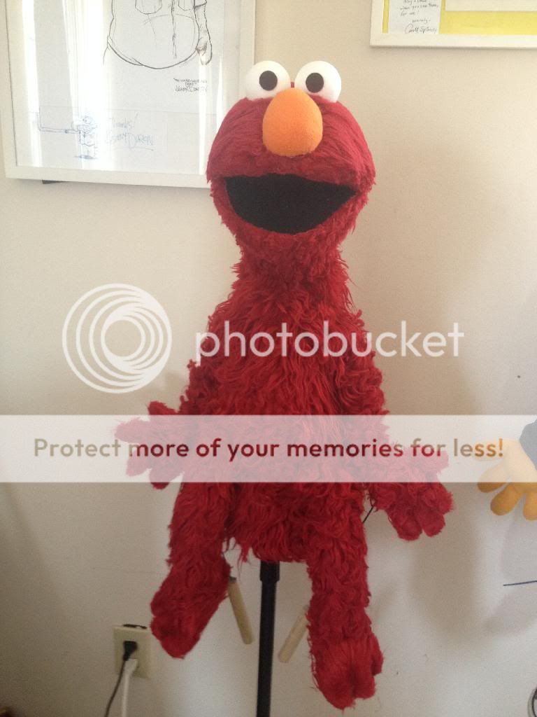 So Elmo's extremities were bothering me because his hands were to large, his arms and legs were too long, his feet were sloppy, and I hot-glued his nose on and it looked bad. I took a few hours to redo all of those things correctly. I made his hands and feet smaller and fingers/toes more defined, shortened his limbs, and sewed his nose on. I also thinned out his neck because it was too saggy. Let me know what you think!